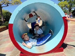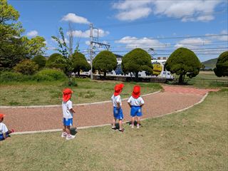 交通公園に行ってきました。とってもいいお天気で、遊具で遊んだり、電車を見たり…。 信号がたくさんあり、一つ一つ見ながら、横断歩道を渡って、交通ルールを確認する機会となりました☺ |