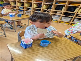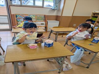 幼児クラスの給食 | 幼児クラスのおやつ | 1歳児、完了食の子どもたちのおやつ |