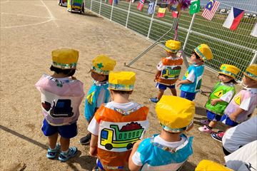 年長さんが傘袋を使って色水遊びをしました。 | 色水のカーテンきれいですね! | 運動会の練習。 |