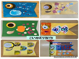 皆の作ったこいのぼりを紹介 こうやってつくったよ~と上手に紹介してくれました。 各年齢のこいのぼりです。