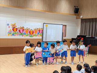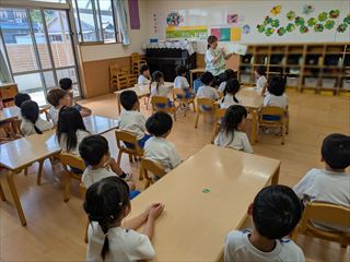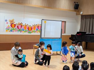全園児がお遊戯室に集まって、こどもの日の集会を行いました。
