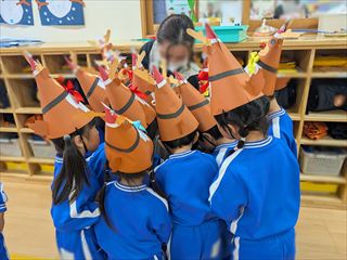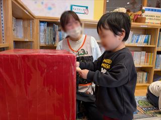 | 先日、皆が作った手作りの年賀状を2~5歳児さんは郵便局まで歩いてだしに行きました。 0.1歳さんは手作りのポストに投函。 楽しみにしておいてくださいね。 |