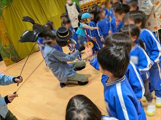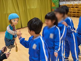 | 劇団すぎのこさんに来ていただき、人形劇を見せていただきました。 終わった後は、お見送りもしてくれました。 |