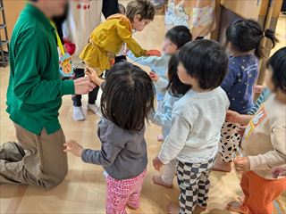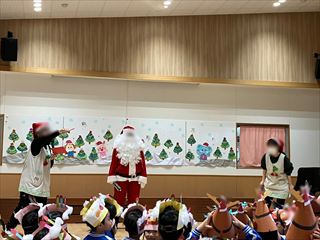 | 園にサンタさんが来てくれ、一緒に踊ったり、写真撮影をしたりして楽しみました。 |
